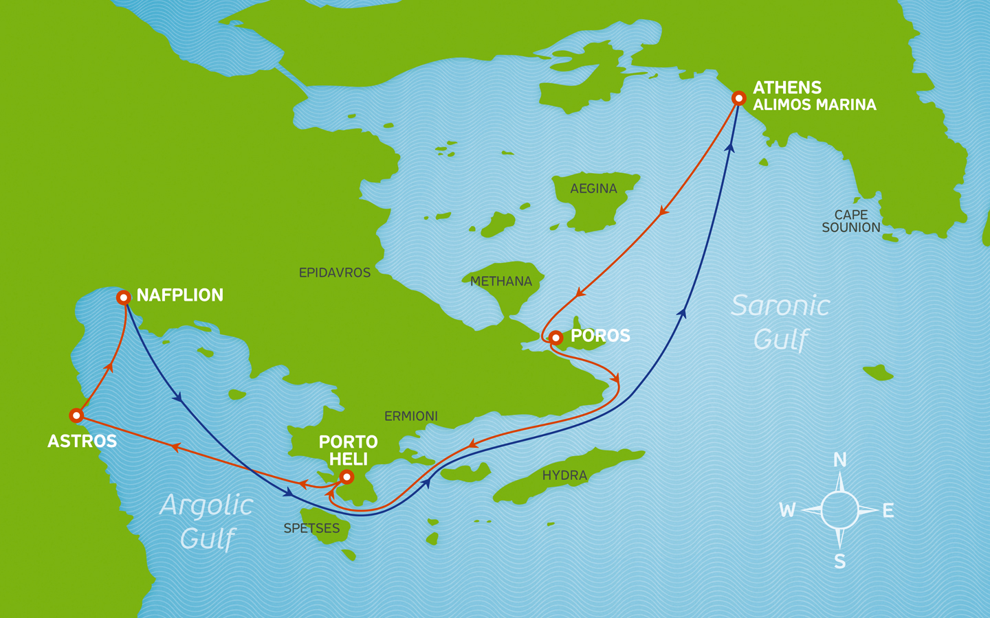 Αθήνα → Πόρος → Πόρτο Χέλι → Παράλιο Άστρος → Ναύπλιο.
