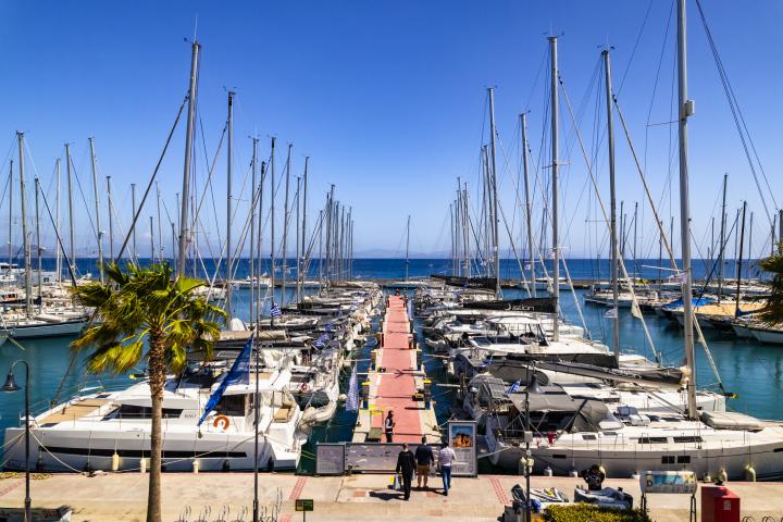 Kos Marina and its immediate vicinity, located on the northeast tip of the island within Kos town, offers plenty of sightseeing, shopping and dining options. From Kos Airport the Marina is just 22km, less than 30-minute taxi ride. Public transport options are also available.