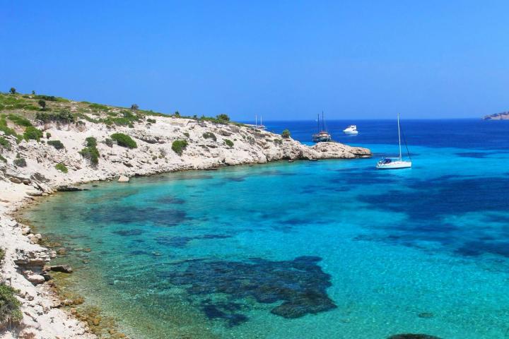 Set sail to the serene island of Pserimos, known for its unspoiled sandy beaches including Vathi and Avlakia. Enjoy the tranquil atmosphere and local tavernas offering delicious Greek cuisine. Anchor at Pserimos Bay or Ormos Marathounda.