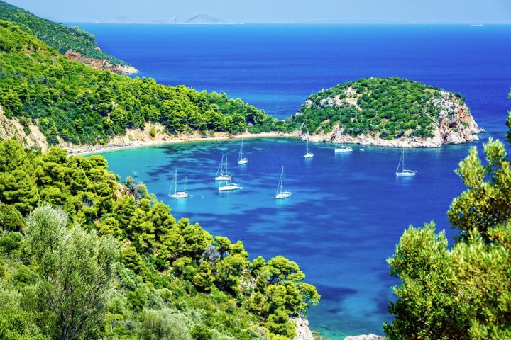 Skiathos offers some fantastic sailing for both one and two week charters. You can start your holiday by enjoying the unspoiled bays and small ports of the Gulf of Volos. Note that Istion's charter base in Volos is also a good spot to start your charter if the Gulf is where you want to spend most of your time. Further west, the beautiful green islands of the Sporades including Skopelos, Alonissos and Skyros then beckon you to pay them a visit. Sheltered and unspoiled anchorages along the way, coupled with sandy white beaches, are a common feature of all these islands.