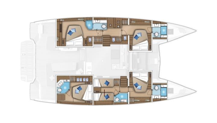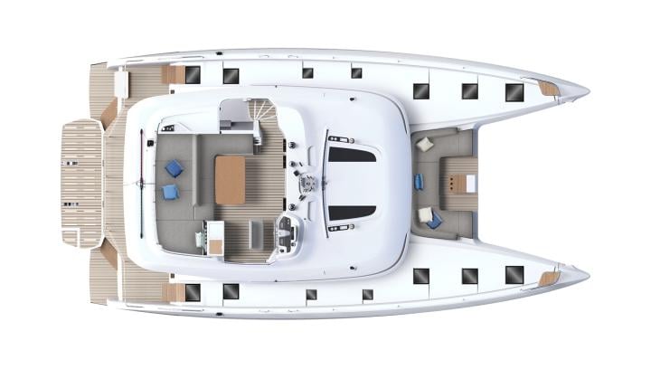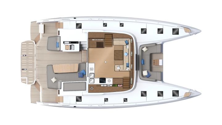Our new Lagoon 55, Azul, is characterized by an impressive sense of spaces maximizing comfort while maintaining great performance under sail. As a modern classic, boasting in its curved lines of artistry and modernity, the Lagoon55 stands alone. Every single detail speaks to the boat’s strength and beauty. The new on-board access and circulation concepts offer a brand-new sensation. The transoms are no longer just a circulation area but a real living space at anchor, for cooking in the outdoors or simply for dreaming with your feet in the water...