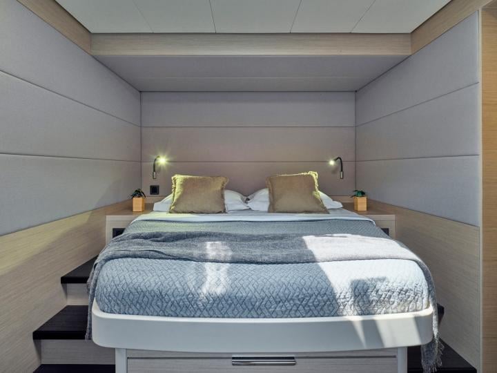 Her high-end interior touches and her natural sunlight in her saloon and rooms are meant to evoke feelings of peace and harmony. She features 4 double cabins with ensuite facilities and accommodates up to 8 guests. Her excellent crew of three will offer you an unforgettable experience on board. Enjoy your magnificent days and the moonlight nights at sea!