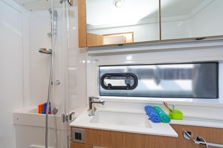 The BALI CATSMART remains faithful to the DNA of the brand, including the “BALI door” and the rigid deck of the forward cockpit that made the BALI reputation. This model also offers twin helm stations for easy sailing manoeuvres and helming. A boat perfectly adapted to leisure sailing and enjoying family time at anchor.