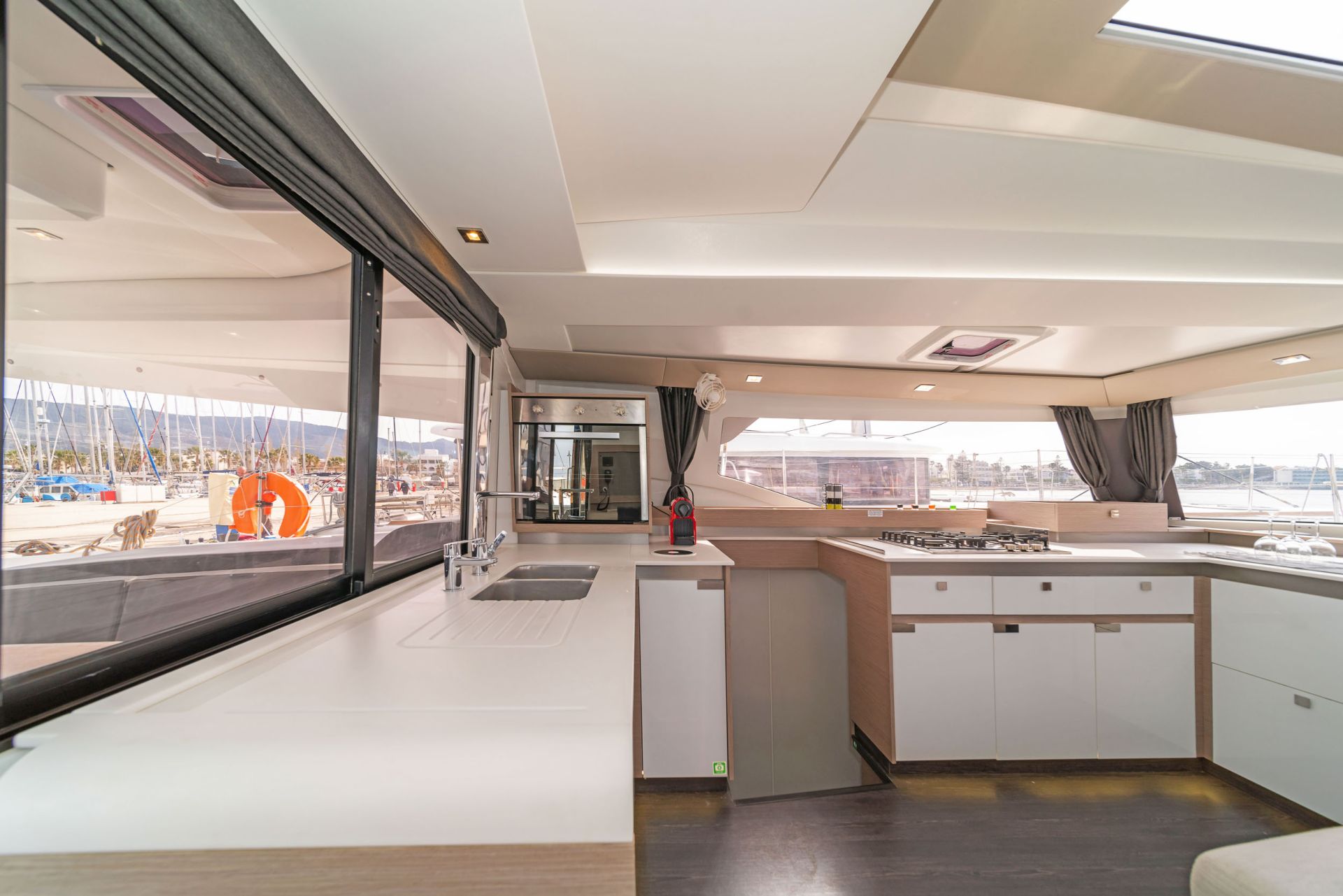 The Fountaine Pajot Elba 45 Owner’s Version is a unique cruising catamaran with a spacious owner’s suite (cabin), two additional double cabins and generous living areas, combining light-filled interiors with excellent sailing performance.