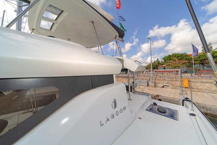 The feel at the helm is gentle, and you feel the fact that the sails have been brought aft because it tends to head up. It is an excellent feeling, not least because it is on the flybridge and the helm is centrally positioned. Visibility, both forwards and to the side, is always excellent.