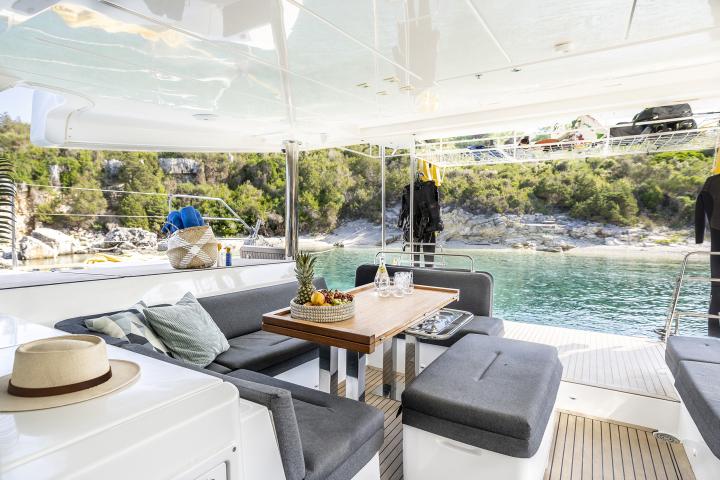 Tamiro is our Lagoon 52F, a luxurious catamaran based in the Ionian available for fully crewed charters in the beautiful Greek waters.