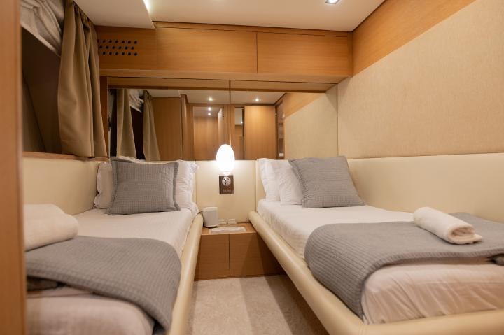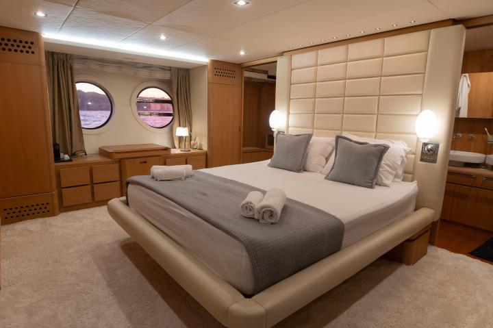 8 guests in 1 Master Suite, 1 VIP and 2 Twin Cabins of which the one can be convertible to double, all with en-suite facilities.