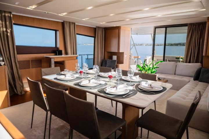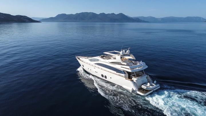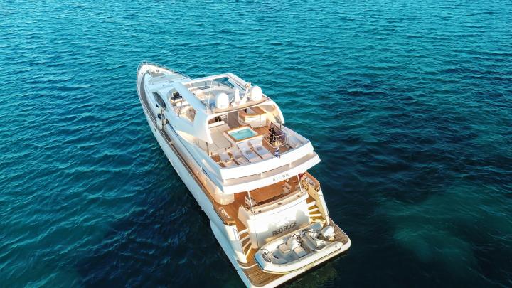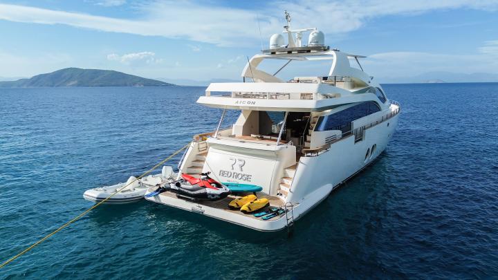 The Aicon 85 Flybridge Red Rose is a striking luxurious motor yacht that seamlessly blends sleek design with exceptional comfort, delivering an unforgettable yachting experience. Her modern yet sophisticated profile makes her a true standout on the water, while zero-speed stabilizers ensure supreme comfort even at anchor.