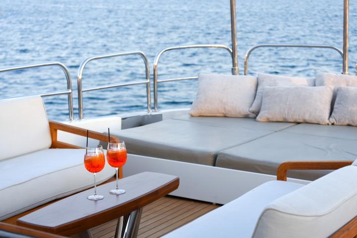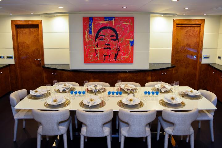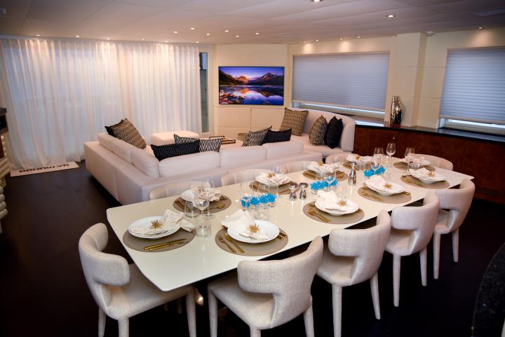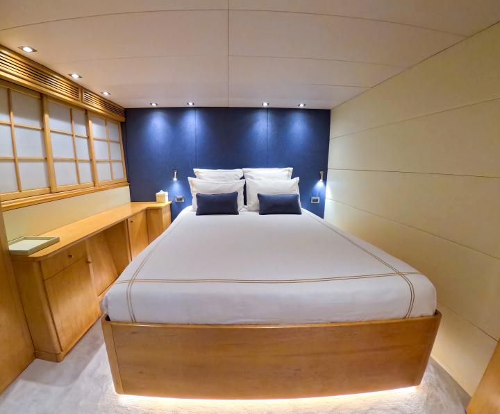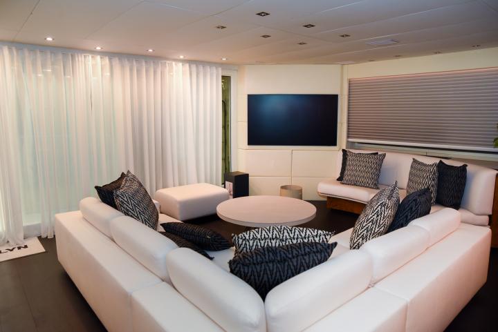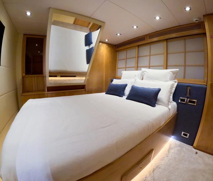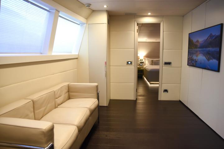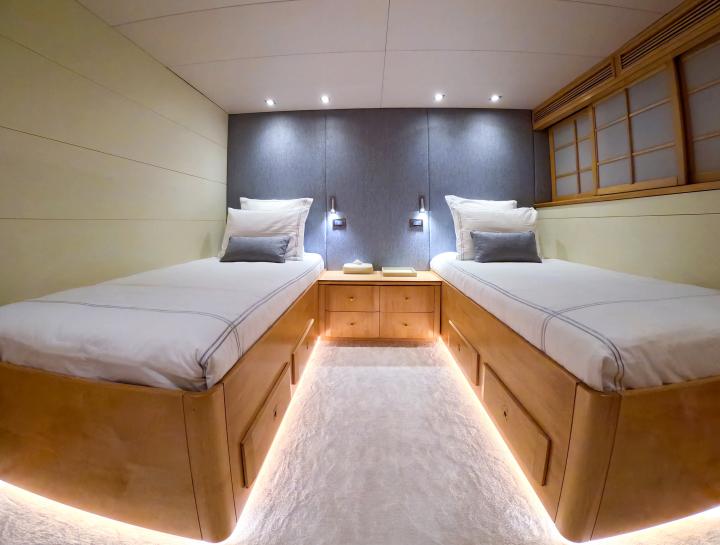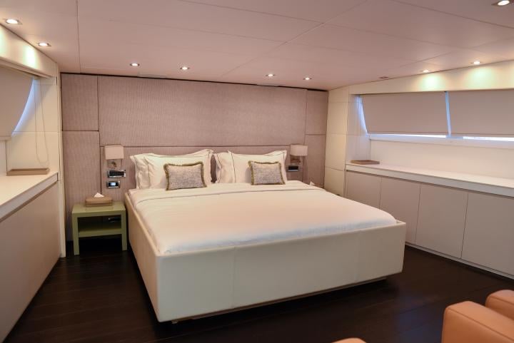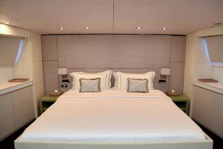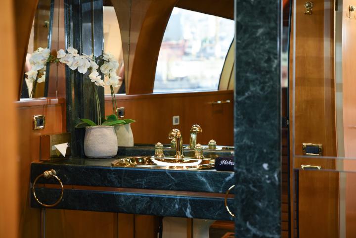 She boasts a swim platform, making accessing the crystal-clear waters of the Mediterranean effortless. BROOKLYN is the perfectly sized vessel for family holidays on the water boasting five spacious staterooms that can be configured to sleep up to 10 guests. Her voluminous full-beam Master Suite on main deck with sauna includes a luxurious en-suite bathroom with a sauna and a separate area that can be used as an office . Her remaining VIP, Double, and Twin Staterooms ensure guests enjoy the height of luxury, privacy, and exclusivity.