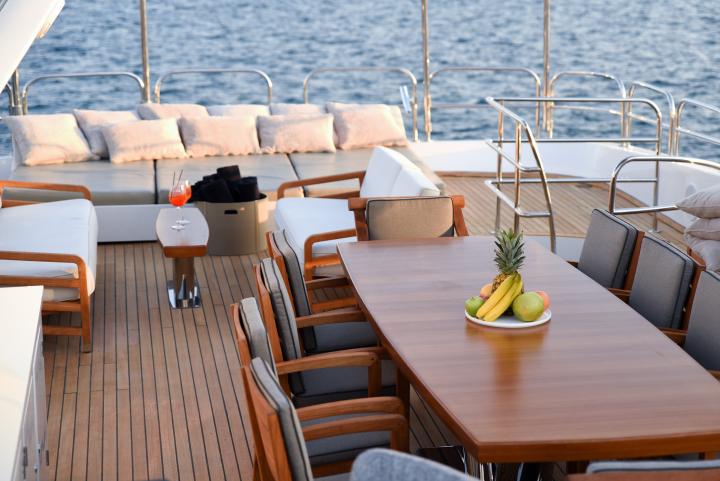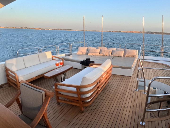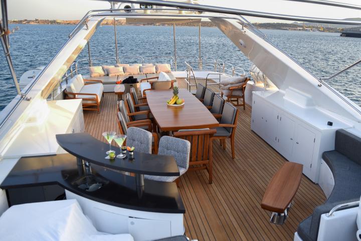 Impressive leisure and entertainment facilities includes a sun deck with custom furniture and a large sun pad on the bow which make her the ideal motor yacht for socializing and entertaining with family and friends.