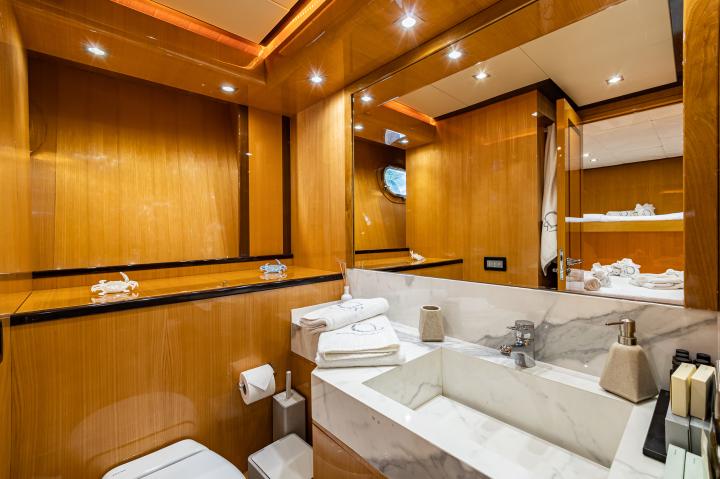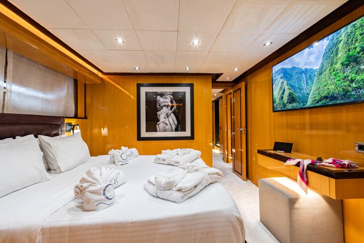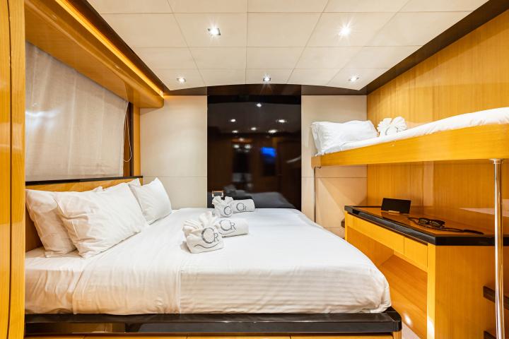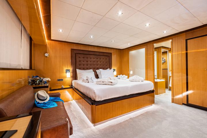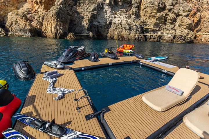 A one-of-a-kind Tecnomar 116 superyacht (116ft), Can’t Remember turns heads wherever she roams, thanks to her super sleek profile, deep navy hull and an exceptional presence on water. Can’t Remember has six staterooms all with en-suite facilities, a unique choice for families as she can accommodate with comfort up to 12 guests! Her main salon ,separated from dining room with a sleek black fixture, boasts selected furnishings and large windows for incredible views. Characterized as the ultimate pleasure point and designed with comfort and entertainment in mind, she has many options for entertaining both indoors and on her exterior decks. Exterior decks feature the aft deck with its shaded al fresco dining area, the fore deck’s large sun pads and the upper deck with an outstanding dining area for 22 guests. Her 7 star services inspires and elevates guest experience to the maximum ,starting from daily changing of apparel and upgraded housekeeping to delivering top tier services in all aspects with great attention to detail. The selection of water toys can ensure pleasing guests of all ages and are easily accessed from her extended swimming platform. Water skis, kayaks, jet skis, stand-up paddleboards, wakeboard and snorkel gear are just some of the fun that awaits you on board!