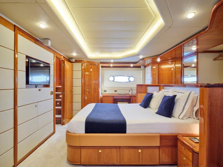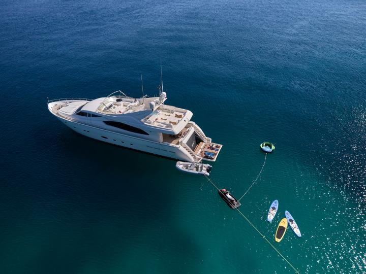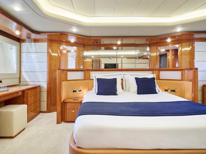 The 88 ft/ 26m Ferretti 880 motor yacht Estia Yi was built in 2004 by Ferretti and she has been through an extensive full refit in 2021. M/Y Estia Yi offers 4 lavish staterooms that accommodate up to 8+1 guests super comfortably. Her layout includes a master suite, a VIP cabin and 2 twin cabins (one with an extra pullman berth), all with ensuite facilities. Her professional and experienced crew of 5 members take care of Estia Yi’s guests on board promising a once in a lifetime yachting experience.