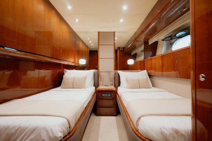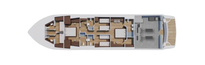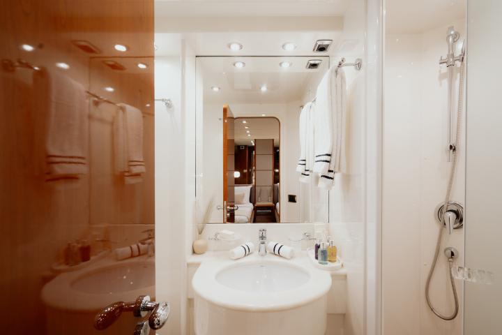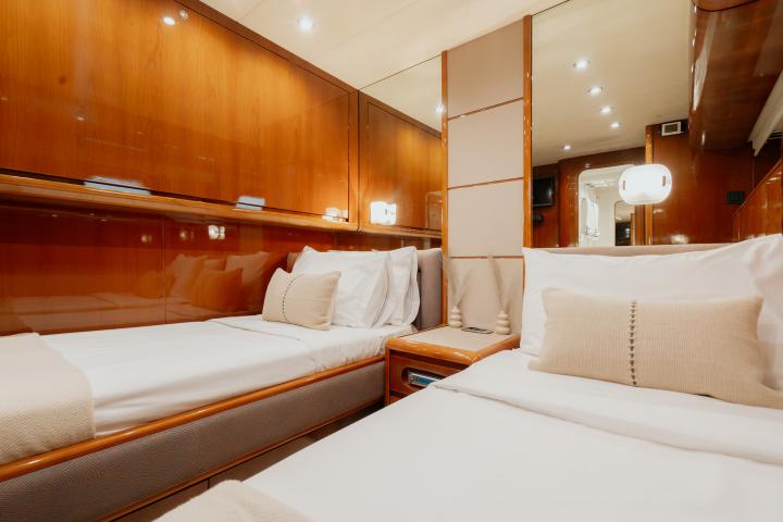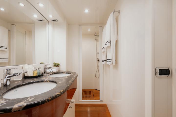10 Guests in 1 Master, 1 VIP & 2 Twin cabins that can be convertible to double (each one with one extra bunk bed), all with ensuite facilities.