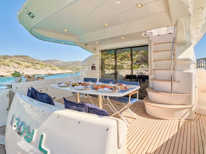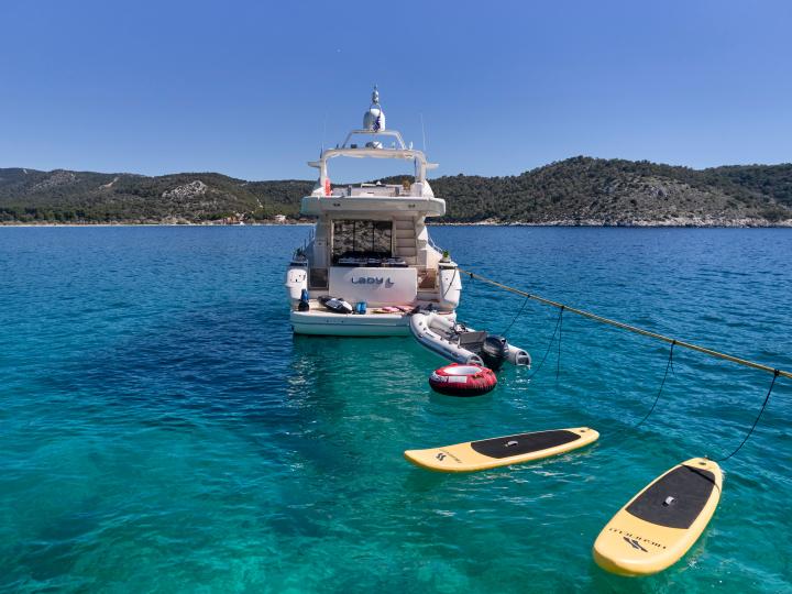 The 64ft/19.5m Altamar 64 motor yacht Lady L was built in 2006 and she has been through an extensive refit program in 2021. M/Y Lady L offer stylish cruising for up to 8 guests with comfortable overnight accommodation in 4 staterooms. Her interior layout includes two double cabins, one twin cabin and one twin with bunk beds, all with private ensuite facilities. She is managed by a qualified crew of 3 willing to satisfy guests needs and wants. The exterior living areas offer a sunbathing space on the foredeck and a seating area on the fly bridge offered for an alfresco dining surrounded by marvelous scenery. From the fine modern lines of the exterior to the spacious interior in combination with her performance, Lady L is an ideal yacht for daily cruises or long weekend charters. Oriented for families or friends who would desire to explore sandy beaches, small bays and coves less reachable from larger yachts.