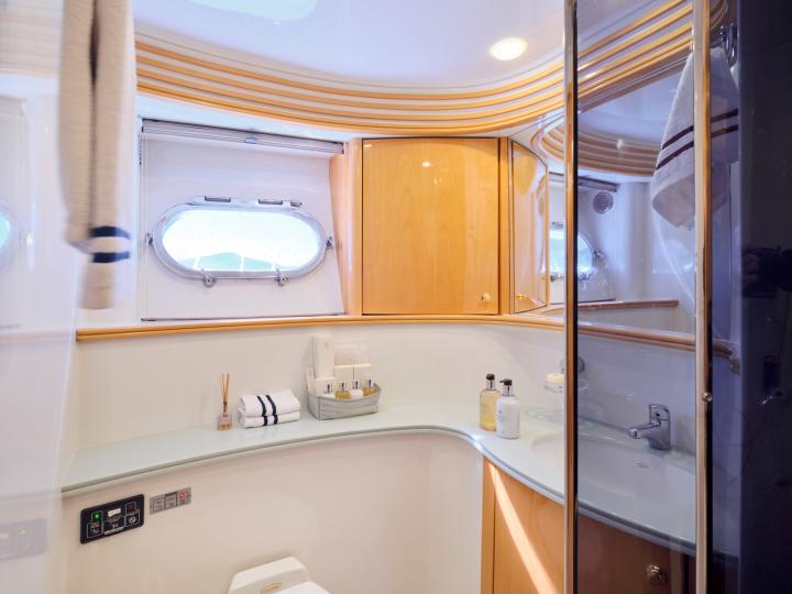 8 guests with comfortable overnight accommodation in 4 staterooms. Her interior layout includes 2 double cabins, 1 twin and one twin with bunk beds, all with private ensuite facilities.