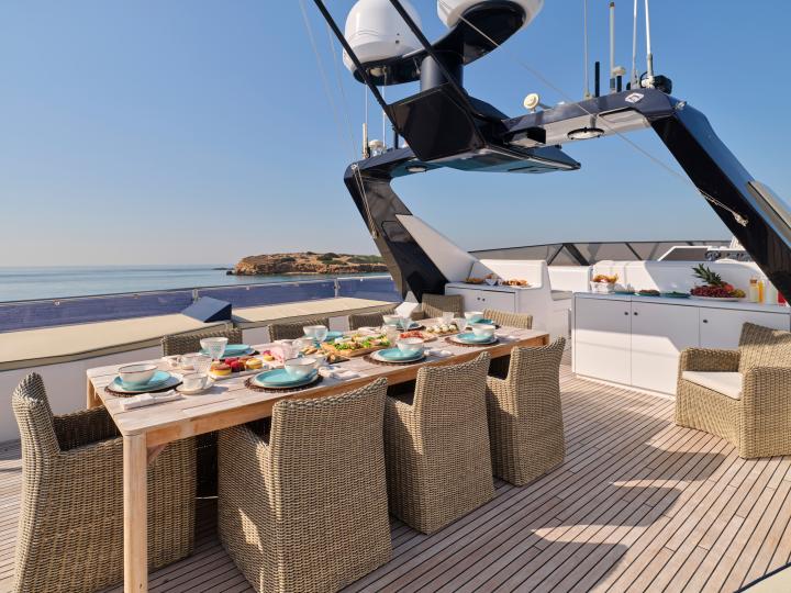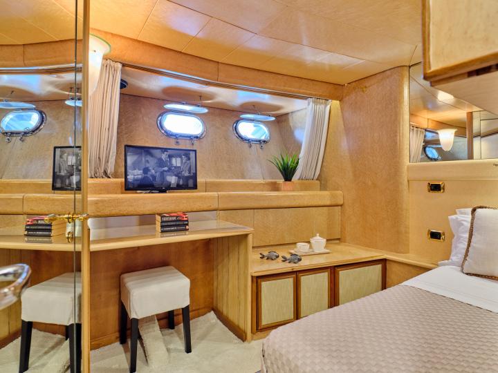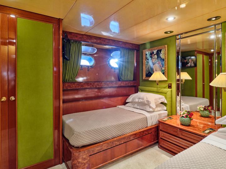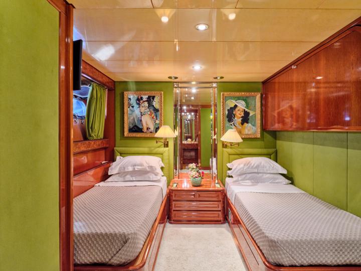 Lady Rina (Ex Andrea) is a luxurious yacht designed by the famous architect Stefano Righini, built by the well respected Italian shipyard Baglietto in 1987 and refitted to the highest standards in 2018/2019 and 2022. As prestigious and long the history of Baglietto is, Lady Rina is also a piece of that history on its own as a milestone in the production of luxury megayachts with the creation of two sisterships stepping into the era of the fast aluminum hulls, the Lady Anfimar and Adler. This reflected elegantly with her maiden owners Swarowski. Lady Rina has been cherished and maintained by her previous owners and withstood time well to stand proudly amongst her newer counterparts. The new owners gave her the tender loving care that she deserved to bring her to today‘s standards, both on safety and aesthetically, with special attention to the finesse that Stefano Righini and Baglietto gave her. She presents a nice layout of six spacious cabins, all with en-suite facilities - two double cabins (one convertible to two single beds), two twin cabins with one pullman berth each and two single cabins with one pullman berth each. Her professional crew of six will guarantee an unforgettable cruising experience.
