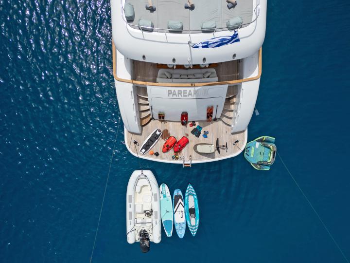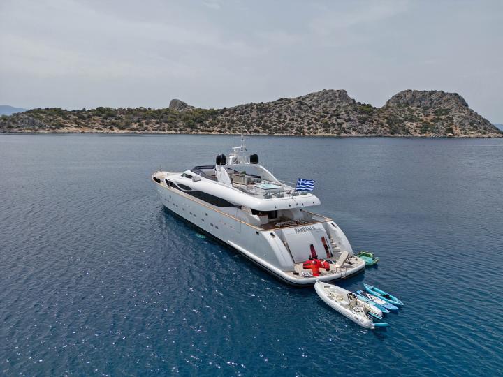 Enter the luxurious world aboard Pareaki II, a magnificent 39.08m motor yacht of Italian craftmanship, designed by the mastermind Roberto Del Re, guaranteeing unrivaled stability and supreme comfort. Following an exquisite refit in 2023, this floating masterpiece presents a cleverly designed layout boasting 6 luxurious cabins, accommodating up to 12 privileged guests.