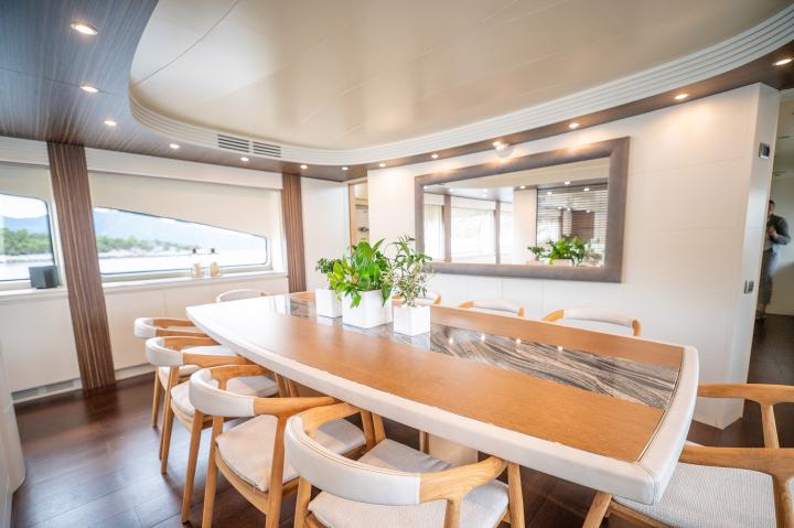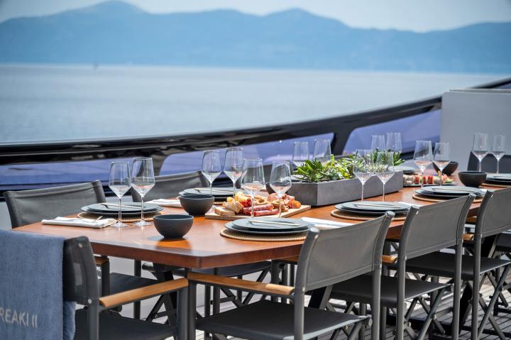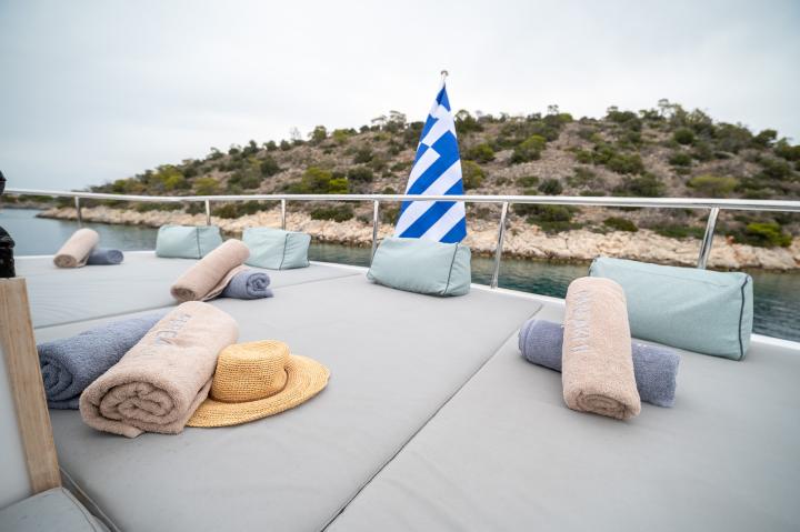 Offering unique amenities and refined accommodation, indulge in delectable alfresco dining experiences on deck, bask in the warm embrace of the sun while relaxing in the jacuzzi. Venturing forward in the grand halls of Pareaki II prepare to be captivated by Pareaki II's stunning contemporary interior adorned with panoramic windows, inviting abundant natural light to dance upon neutral, plush furnishings, ensuring a blissful sanctuary throughout your entire voyage.