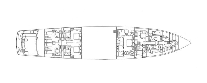 12 guests in 1 x Master cabin, 1 x VIP cabin, 2 x Double cabins and 2 x Twin cabins all with en suite facilities.