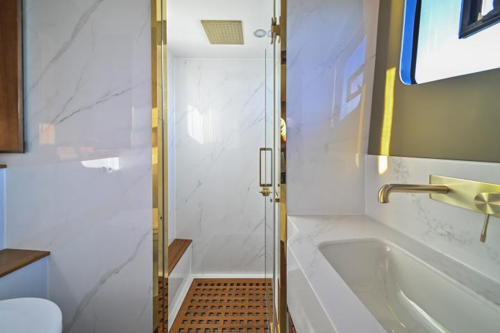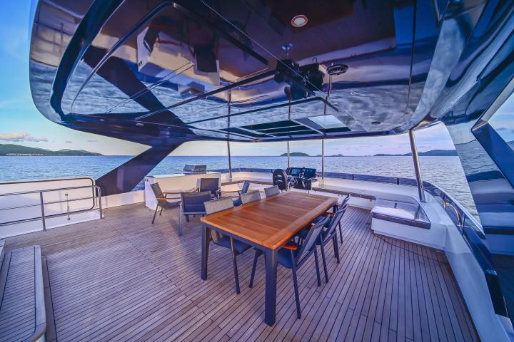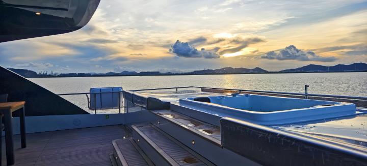 Unwind in the upper-deck Jacuzzi, retreat to one of the two Master Suites, or enjoy the sea views from the forward outdoor lounge. Every area aboard EVITA is designed for pure relaxation and elevated living, blending modern style with luxurious comfort in a truly unforgettable cruising experience.