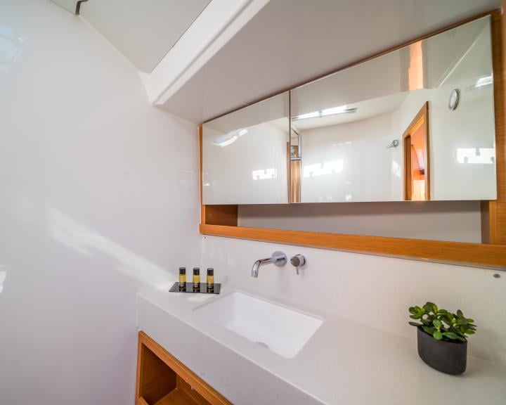 With 3 cabins (one master) and 3 wc it is perfect for groups of up to 6 guests. A grandiose sailing beauty designed to satisfy those seeking the perfect balance of performance, style, luxury and comfort.