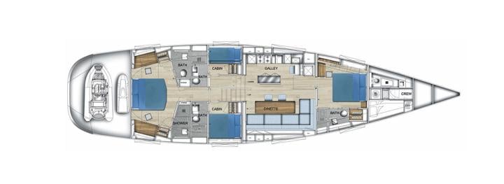 Overall, a luxurious and unique sailing yacht with vast indoors & outdoors space, built to impress both under-sail and on anchor. A great option for those seeking to combine comfort with adventure, while exploring the beauties of Greece by-sea, treated by a warm and experienced crew of 3.