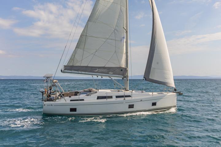 The Hanse 418 model takes individual customisation to a much higher level than one would anticipate based on its size. The impressive technical features, coupled with the clever layout, the immaculate cabin flooring, subtle lighting, warm fabrics and wall coverings on this particular boat set it apart on a class of its own.