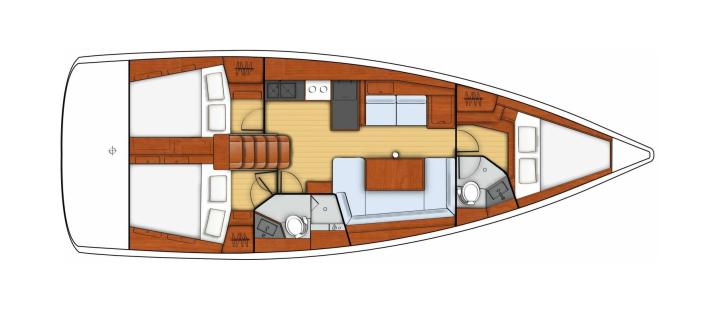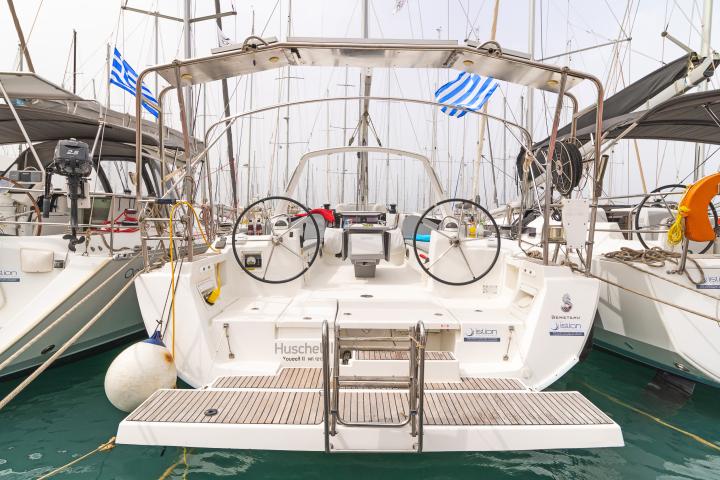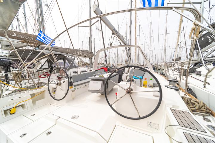 The Oceanis 41 is perfectly suited for both coastal and off-shore navigation. She is a spacious vessel, with a cockpit fitted with the latest tech gizmos that also features twin helms.