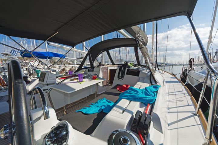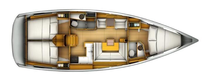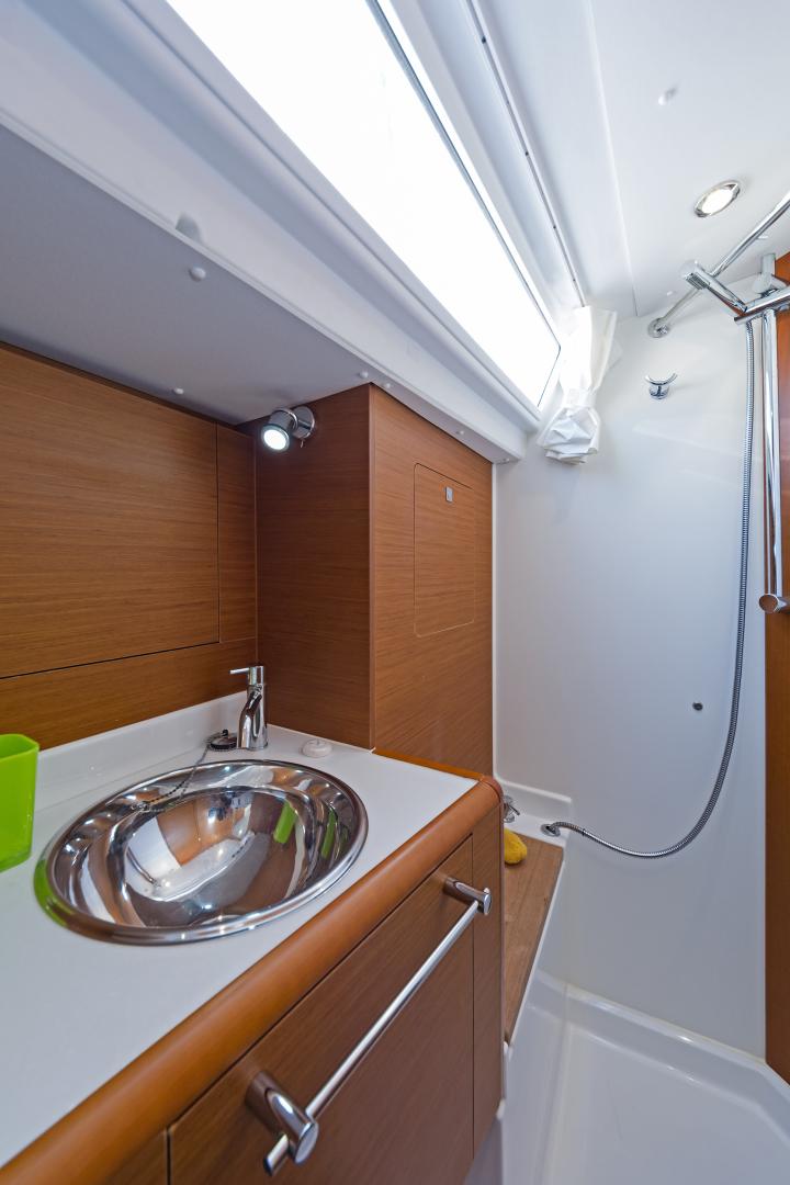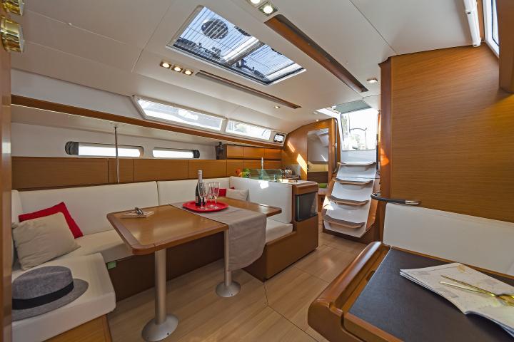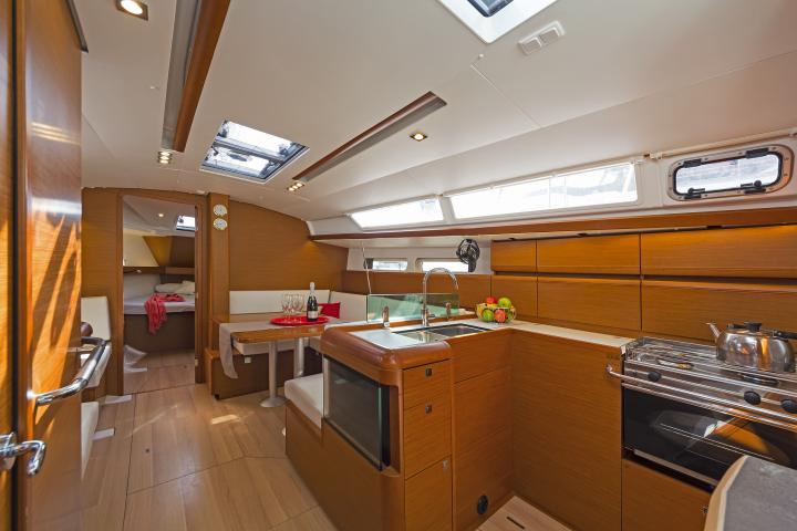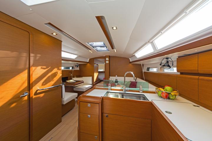 Her modern hull design with its hard chine guarantees excellent stability, thus making the Sun Odyssey 419 a real pleasure to sail.