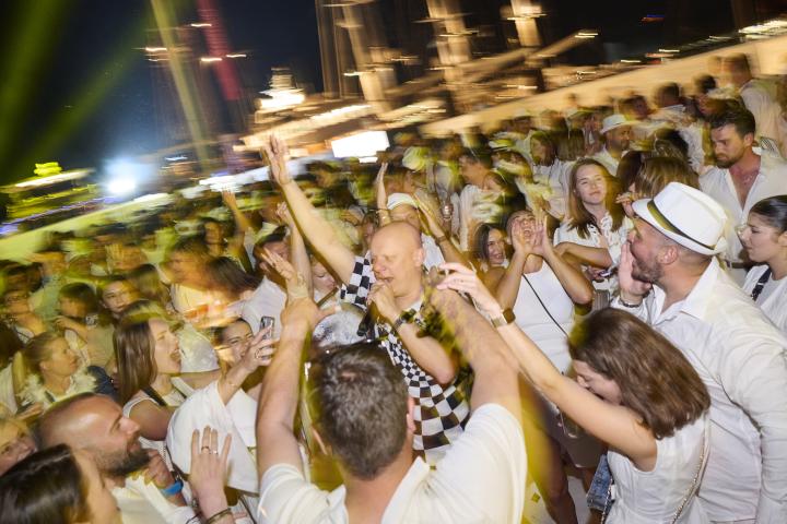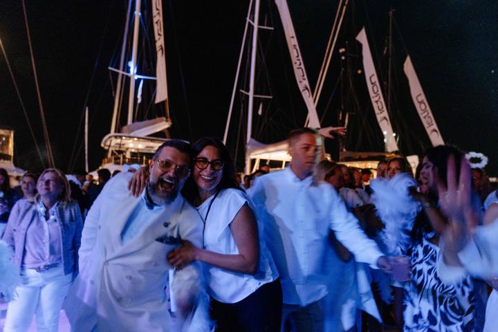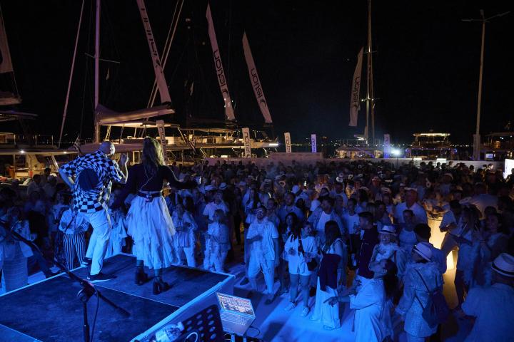 The tradition continues: an all-white affair where flowing linens, summer silhouettes, and effortless glamour set the scene. Against the backdrop of gently swaying yachts and the historic charm of Nafplion, the evening unfolds with a distinct sense of occasion, refined, yet alive with rhythm.